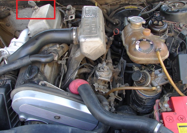 Вот еще вопрос, наверное тоже с перегревом связан. На фото двигатель как мой с одной разницей, шланг который я выделил красным прямоугольником у меня в ужасном состоянии, и из под него идет пар. Может в нем проблема и стоит его поменять
